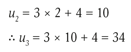 1. A sequence is defined by un+1 = 3un + 4 with u1 = 2. What is the value of u3? (2)